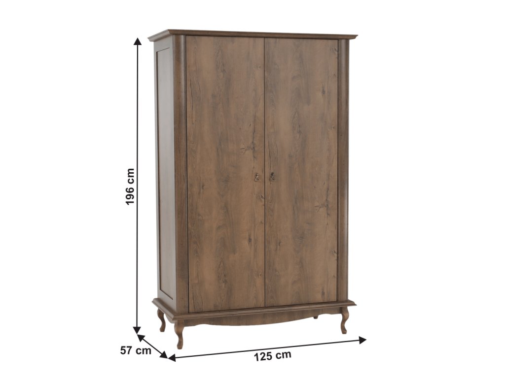 Věšáková skříň DA1 od VILAR v dubu lefkas kombinuje barokní styl s praktickým úložným řešením. Dekorativní 3D efekt a kovové úchytky podtrhují elegantní vzhled interiéru.✔ Materiál: DTD laminovaná / ABS hrany, tloušťka 30 mm