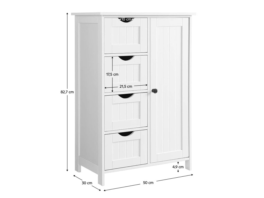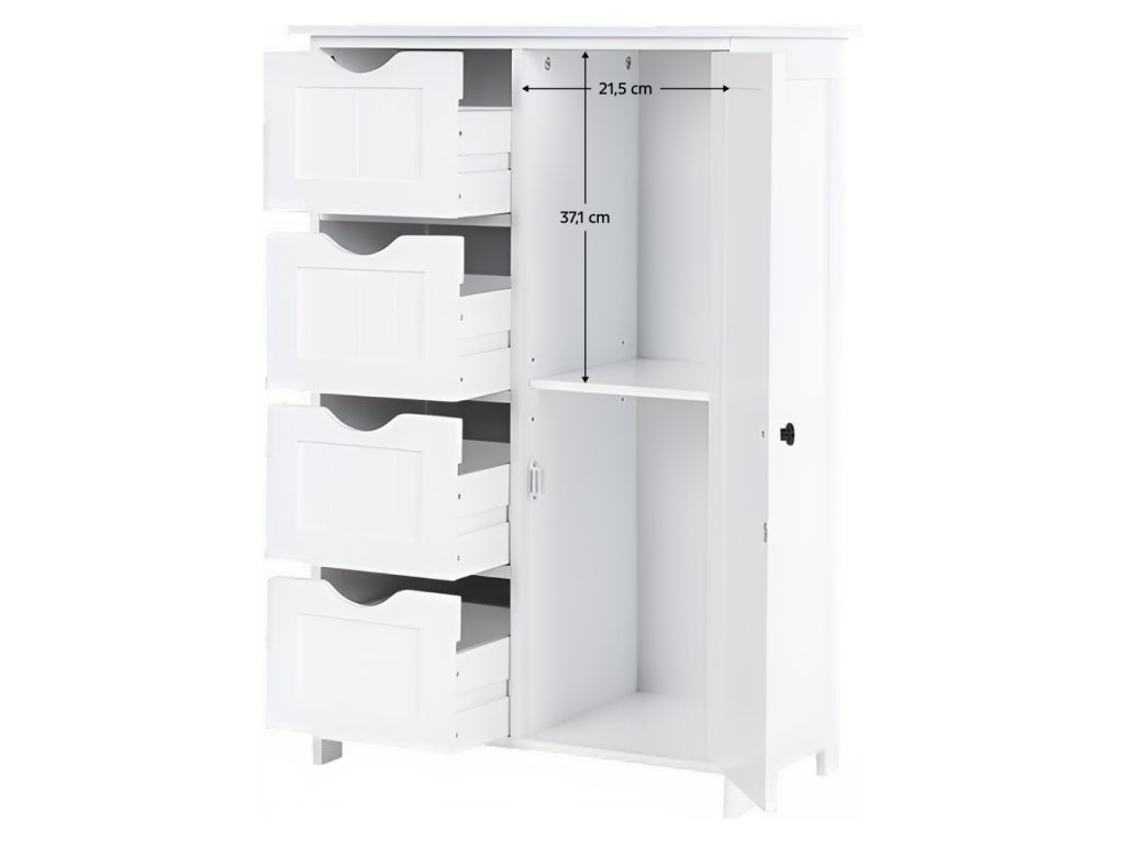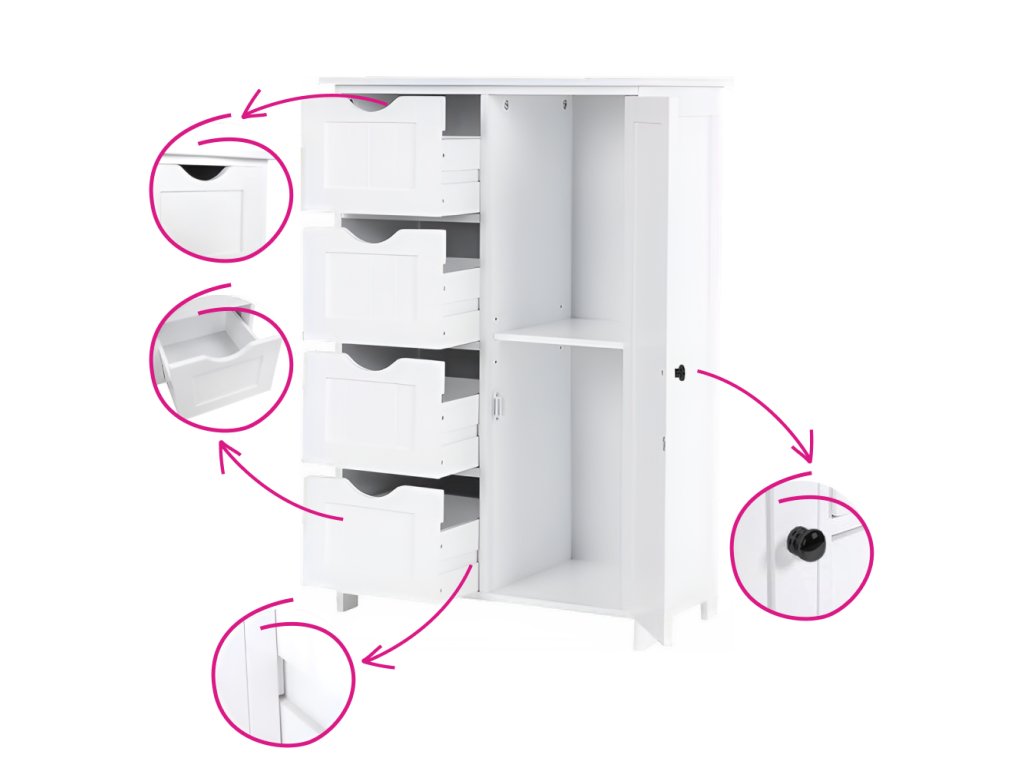 ✔ 4 zásuvky (21,5×17,5 cm) + police + jednodveřová skříňka