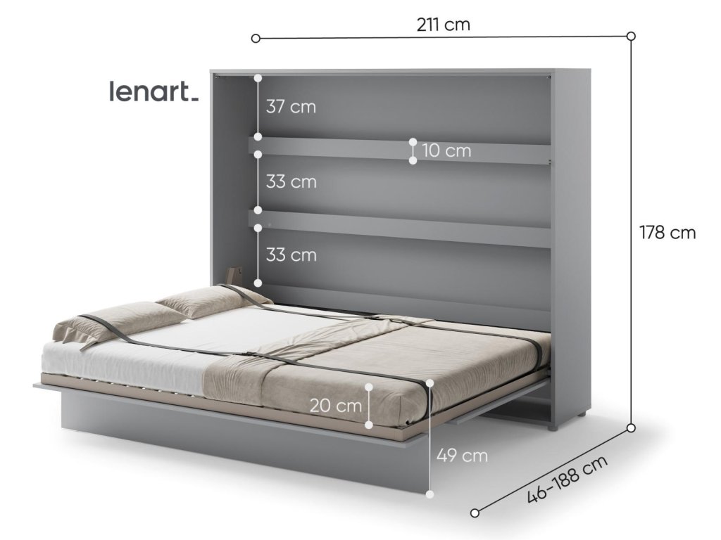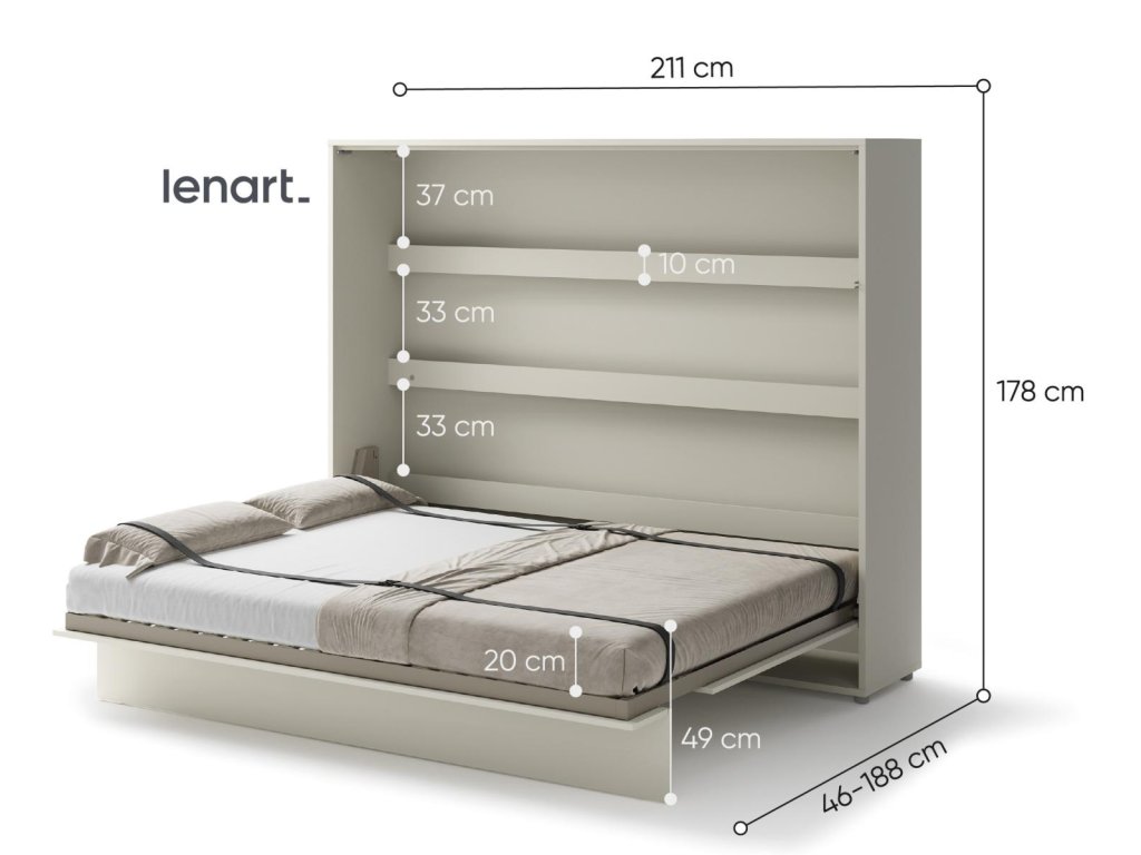 ✔ Praktické police uvnitř skříně, prostor pod postelí 24,9 cm