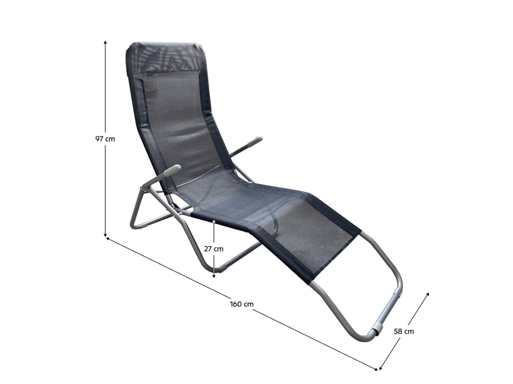 Skládací zahradní lehátko SELNO z oceli a umělé textilie je ideální pro venkovní relax. Díky nízké hmotnosti 4,8 kg jej snadno přesunete.• Rozměry: 58×160×97 cm