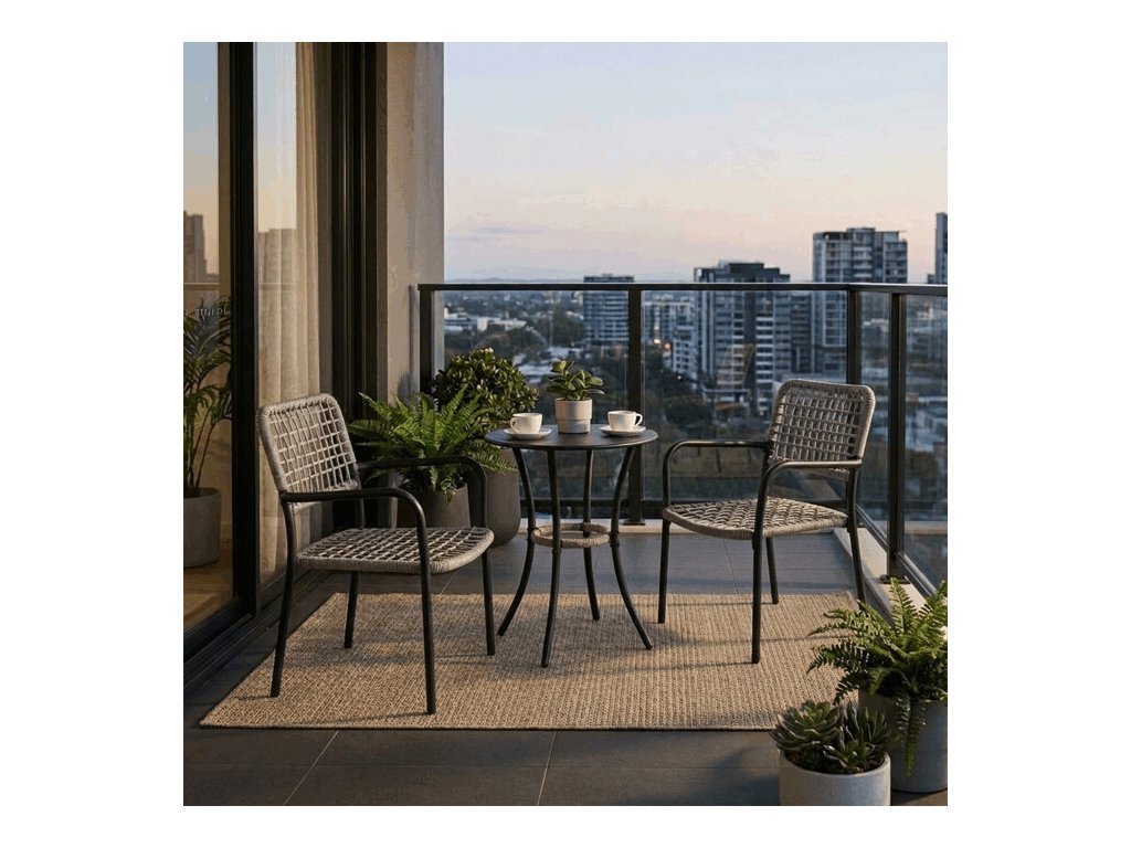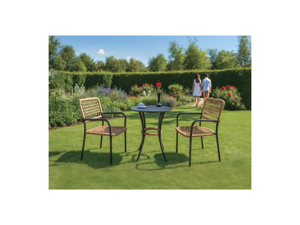Tento zahradní set 1+2 Autronic je perfektní volbou pro pohodlné posezení na terase, balkoně či zahradě. Set obsahuje dvě židle a kulatý stolek, které poskytují ideální prostor pro relaxaci u kávy nebo čaje. Židle jsou vyrobeny z pevného polyratanu v šedém odstínu a mají stabilní kovovou konstrukci s práškovou úpravou v antracitové barvě, která zajišťuje odolnost vůči venkovním vlivům. Kovový stolek s odolnou deskou a pevnými nohami garantuje dlouhou životnost. Tento moderní a snadno udržovatelný set se skvěle hodí do každého venkovního prostoru a nabízí stylové a praktické řešení i pro menší balkony či terasy.Doplňkové parametry