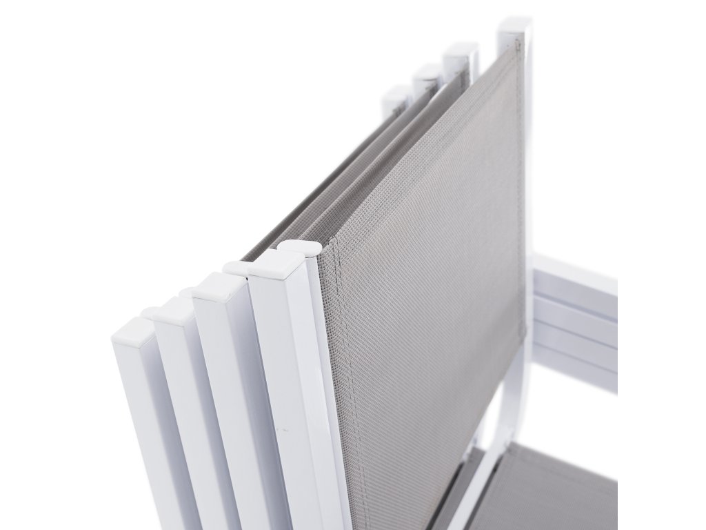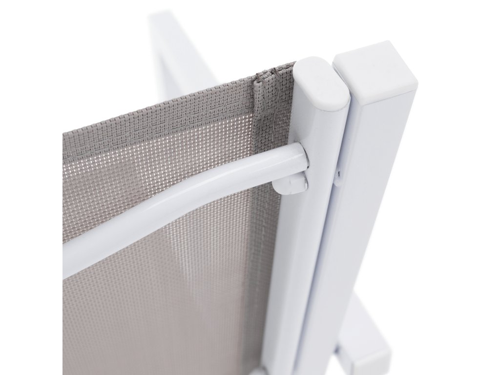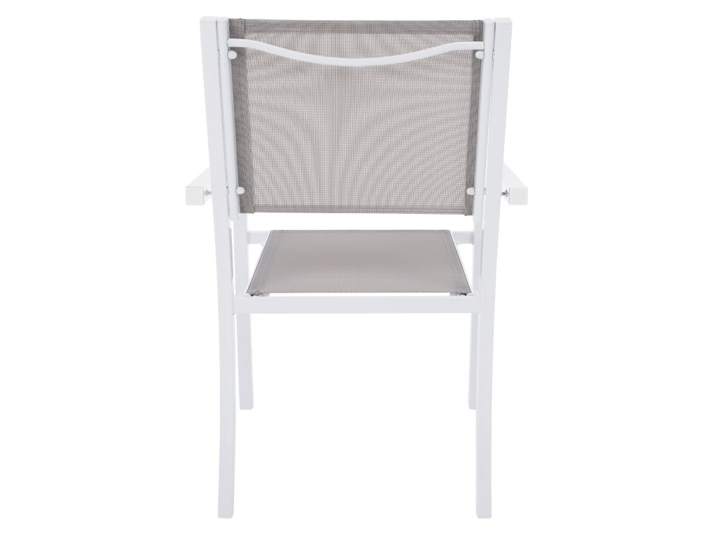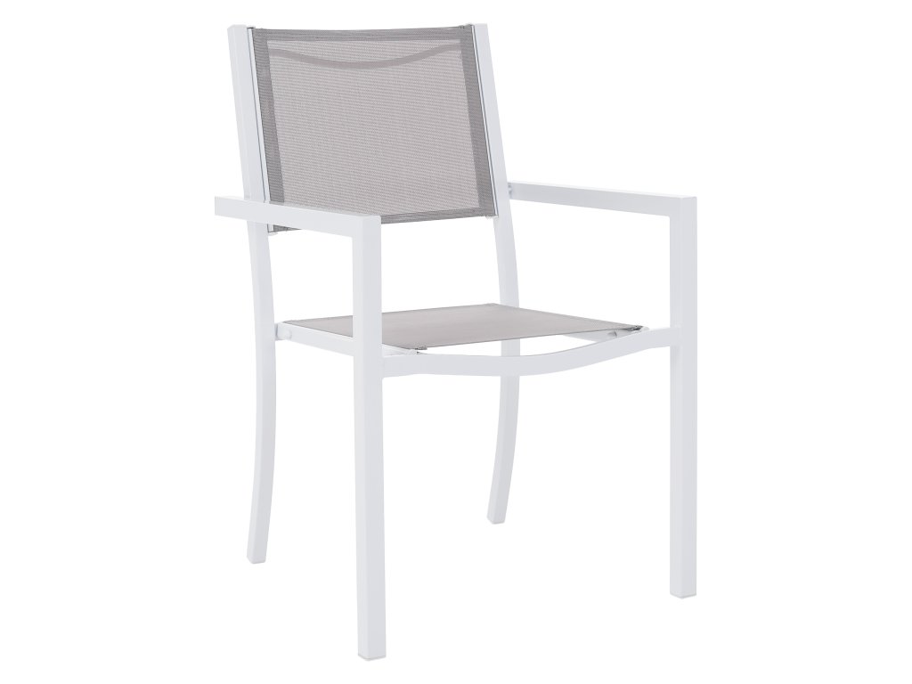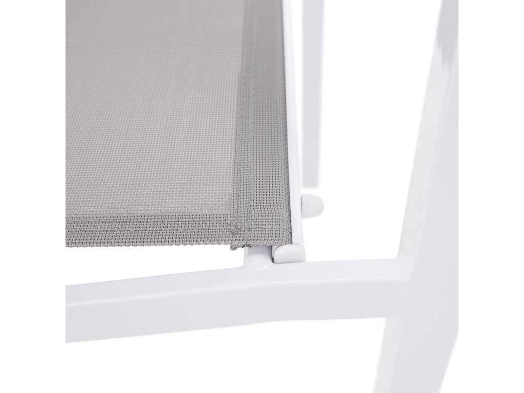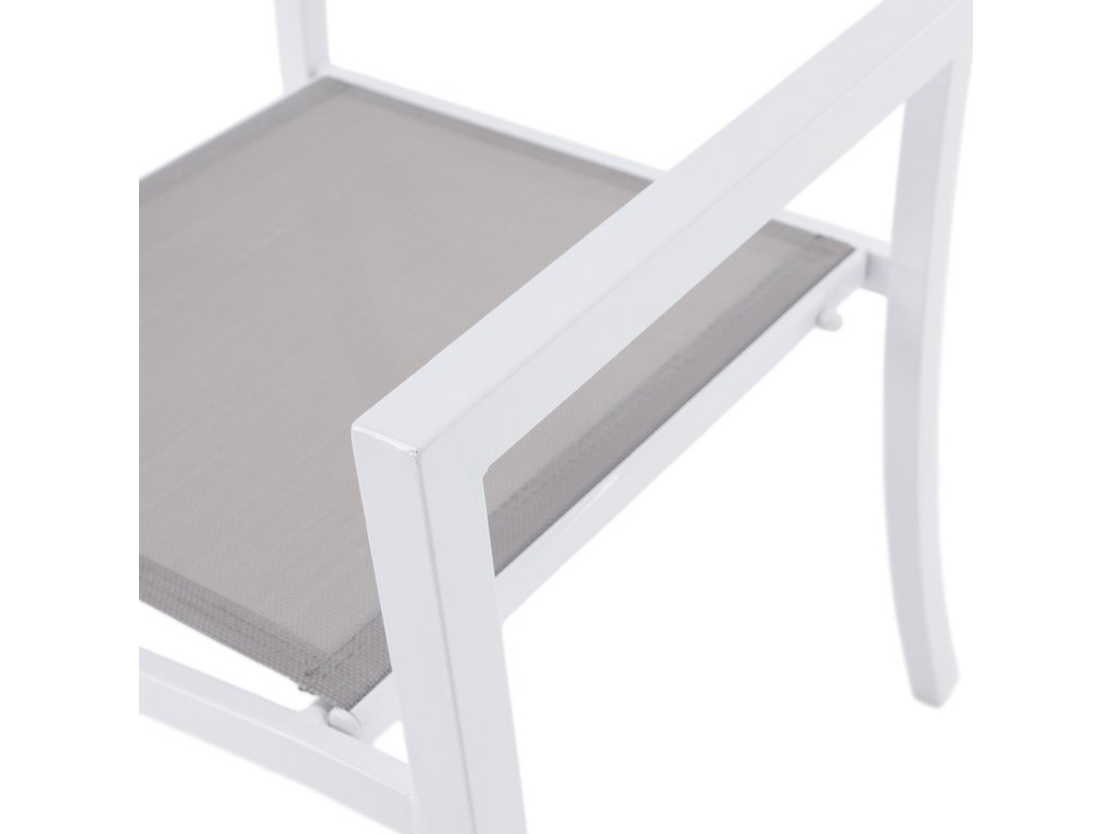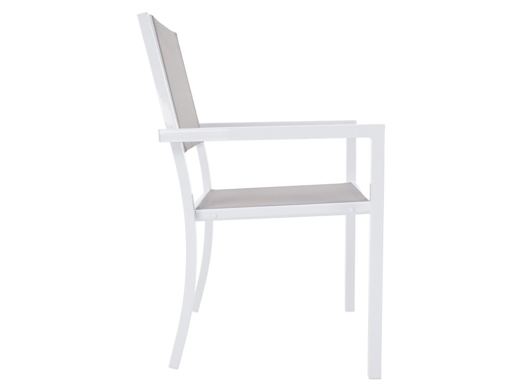 Moderní zahradní židle DORIO spojuje odolnou bílou ocel a světle šedou umělou textilii pro pohodlí a dlouhou životnost. Perfektní pro relaxaci na zahradě či terase.✔ Materiál: ocel / umělá textilie