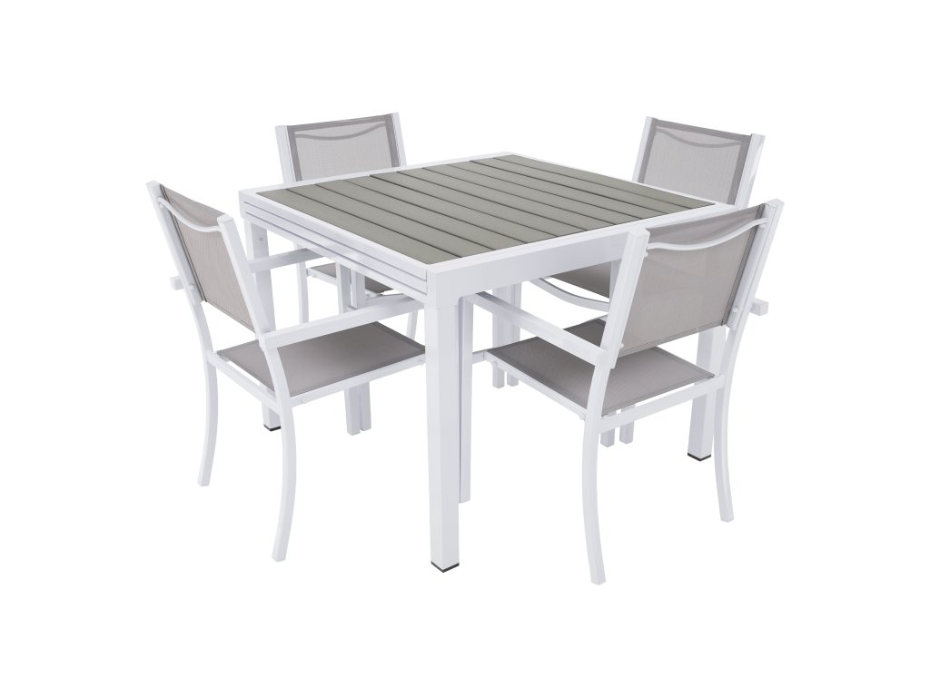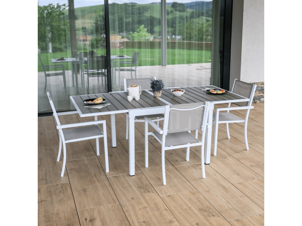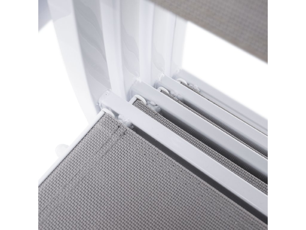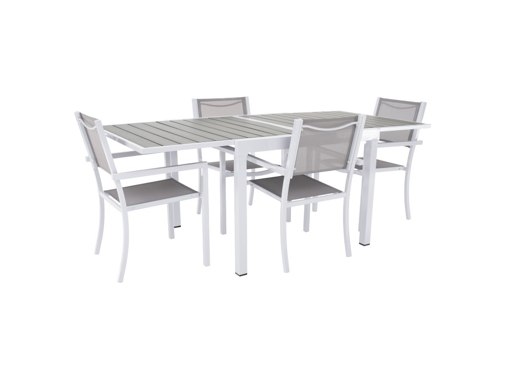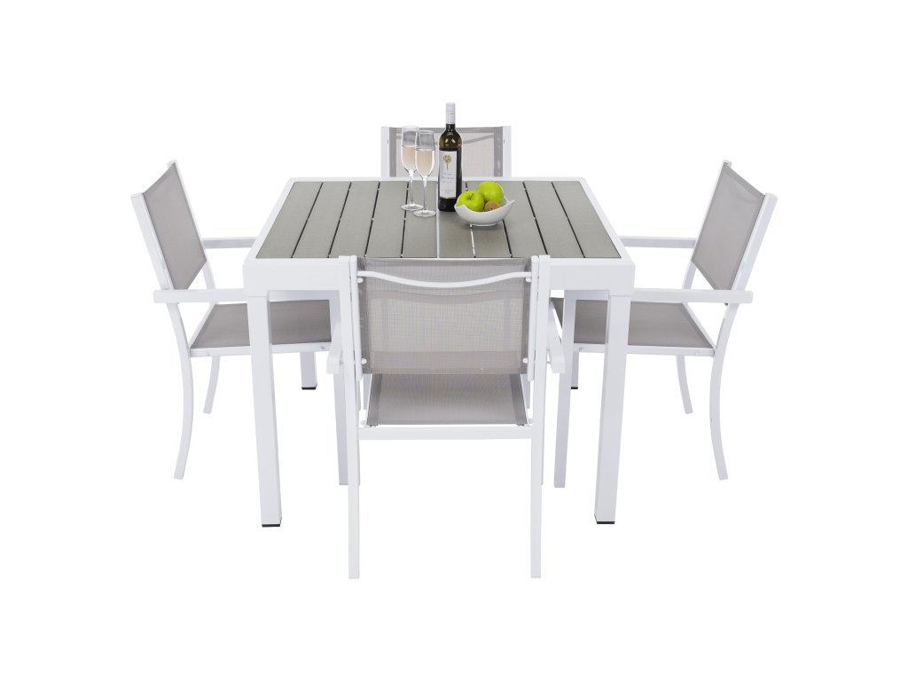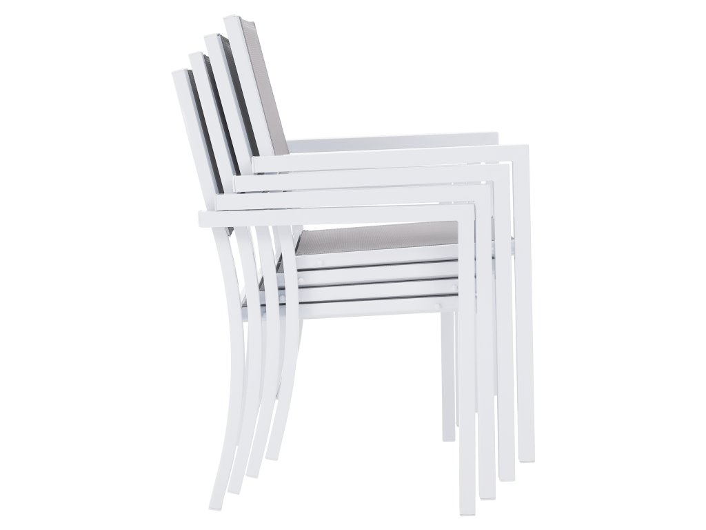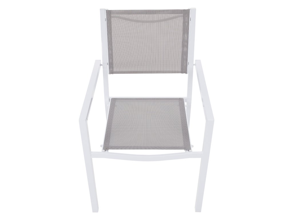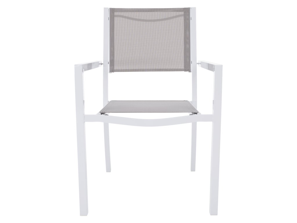 Moderní zahradní židle DORIO spojuje odolnou bílou ocel a světle šedou umělou textilii pro pohodlí a dlouhou životnost. Perfektní pro relaxaci na zahradě či terase.✔ Materiál: ocel / umělá textilie