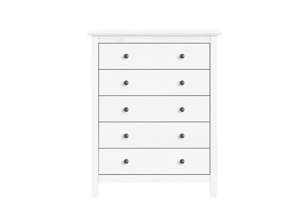 materiál masiv borovice, barevné provedení bílý lak kovové úchytky pět zásuvek s kovovými pojezdyDoplňkové parametry