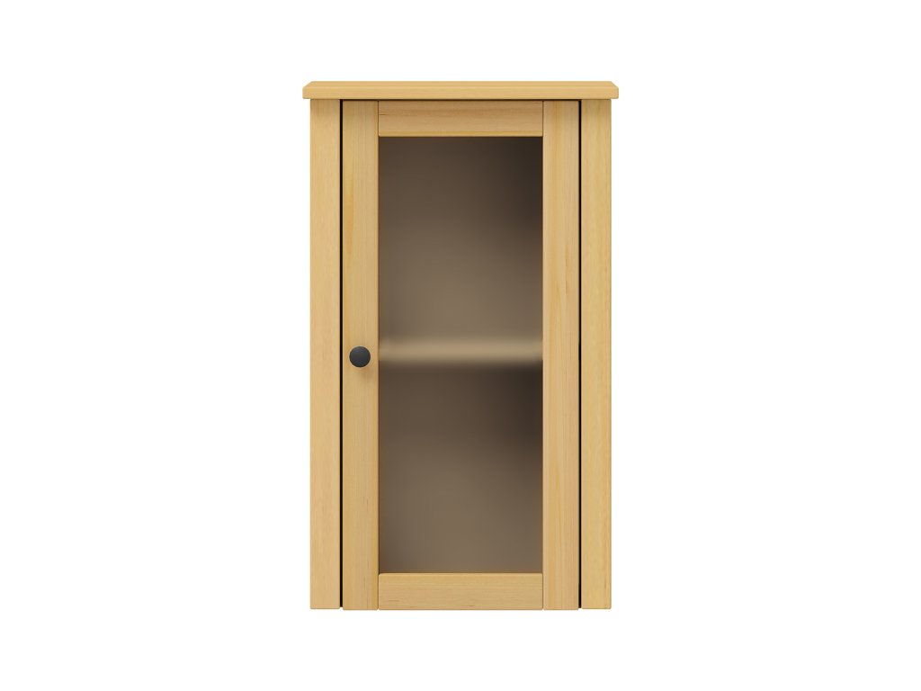 Materiál masiv borovice, barevné provedení buk, jedna prosklená dvířka, za nimi jedna police, maximální nosnosti uvedeny v návodu k montáži, součást sestavy PORTO buk.Doplňkové parametry