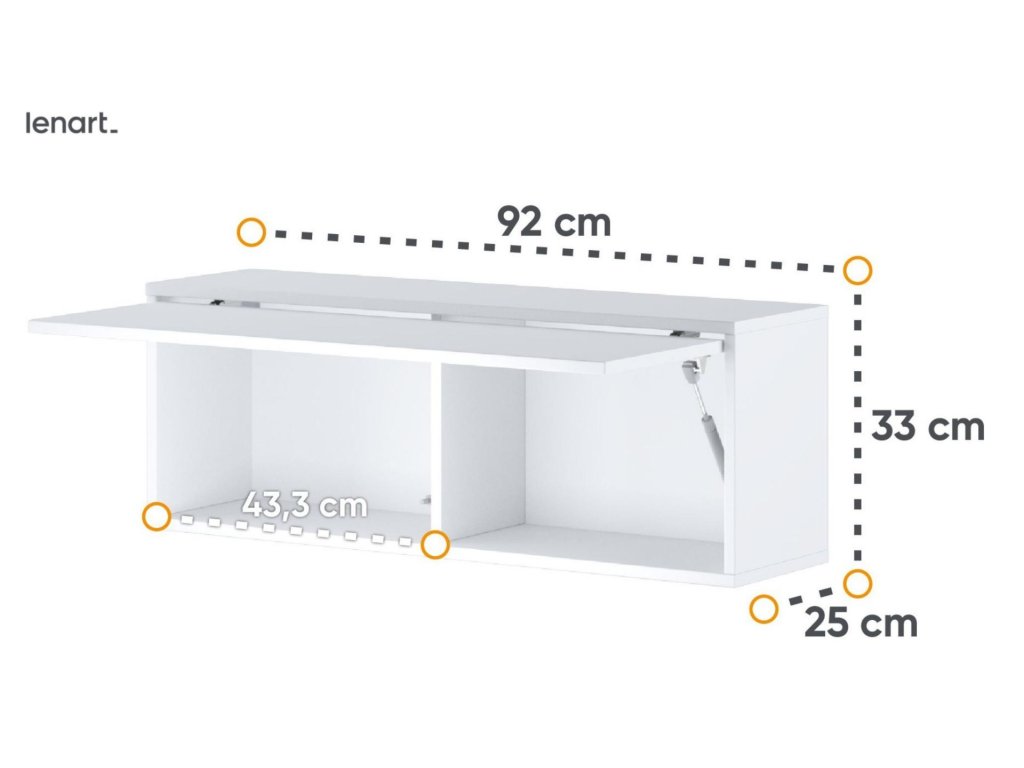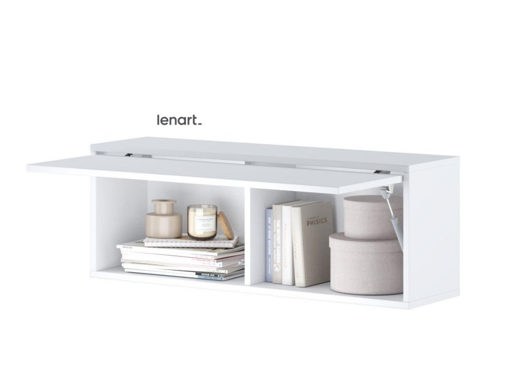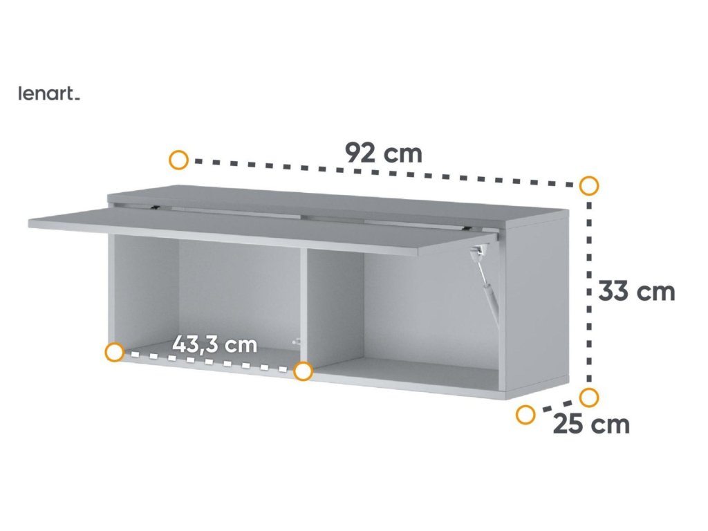 Závěsná skříňka REBECCA v kombinaci bílý lesk/bílý mat spojuje eleganci a funkčnost.✔ Výklopná dvířka – snadný přístup k uloženým věcem
