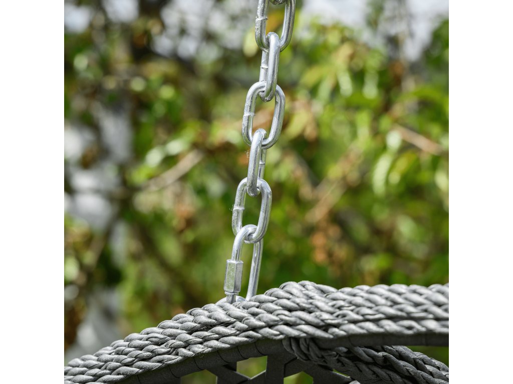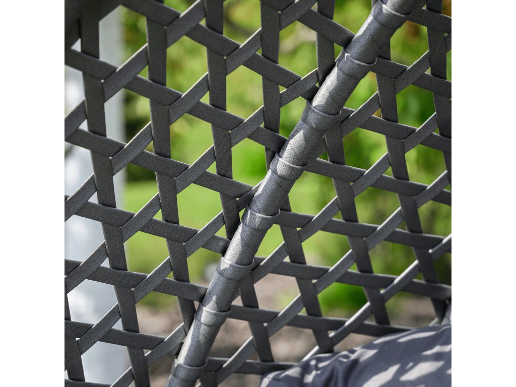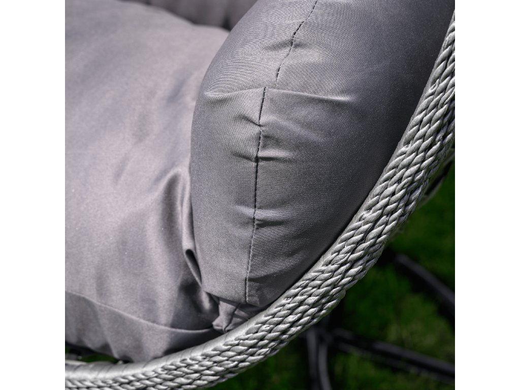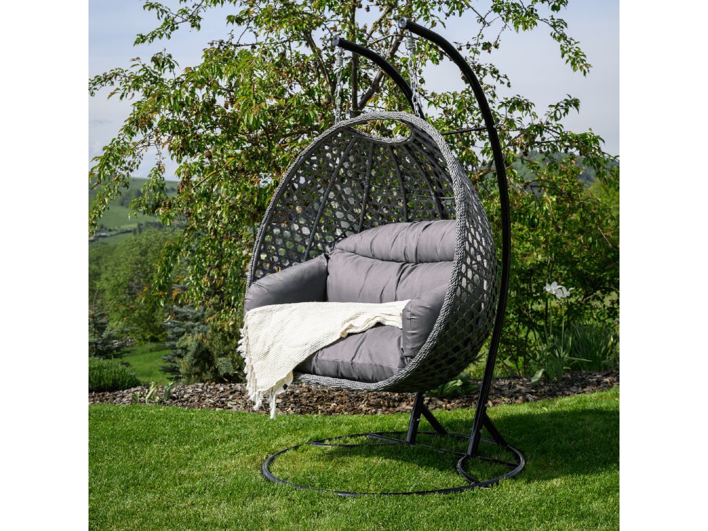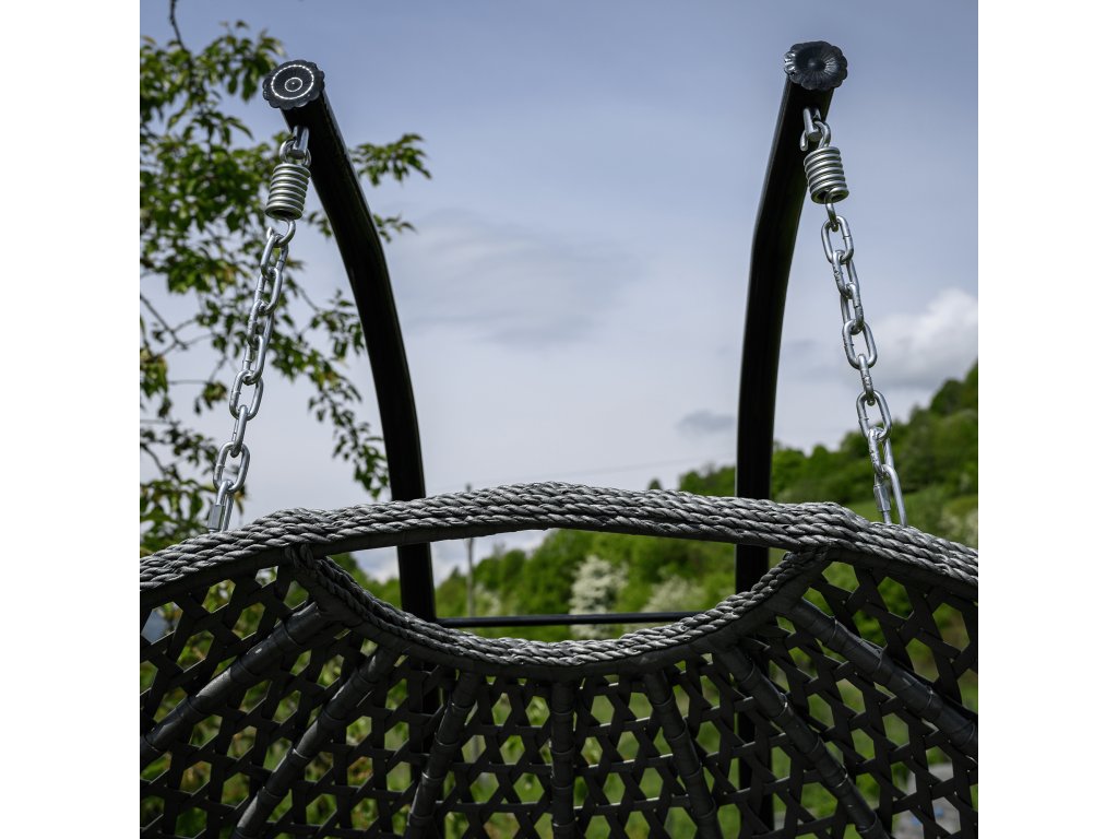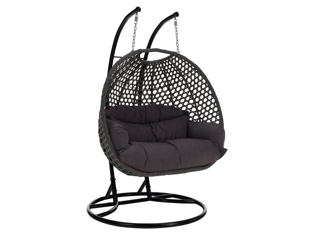 Závěsné dvojkřeslo DAKAN NEW kombinuje pevnou ocelovou konstrukci s elegantním umělým ratanem a komfortními látkovými polštáři.Vhodné do interiéru i exteriéru, s odolností Martindale 95 000 oděrů.