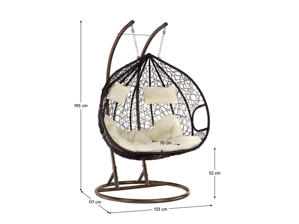 Závěsné dvojkřeslo DALVEA 2 NEW je ideální pro odpočinek doma i venku. Kombinuje odolnost kovu, eleganci ratanu a pohodlí látkových polštářů.● Materiál: kov / umělý ratan / látka