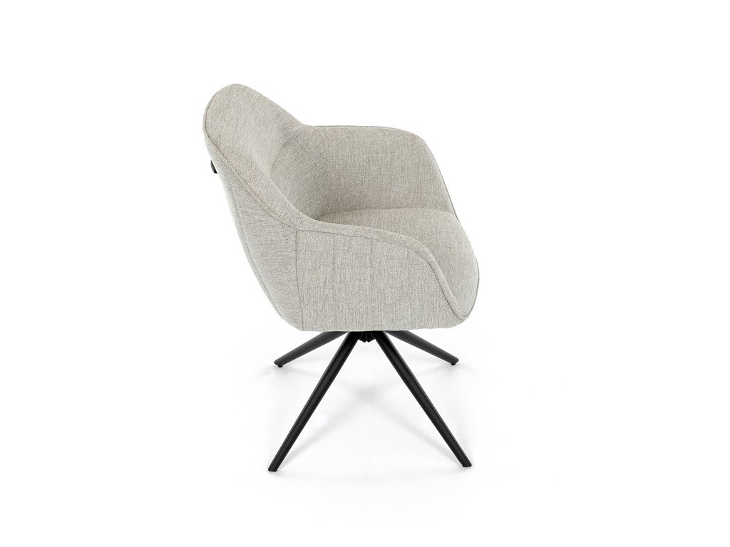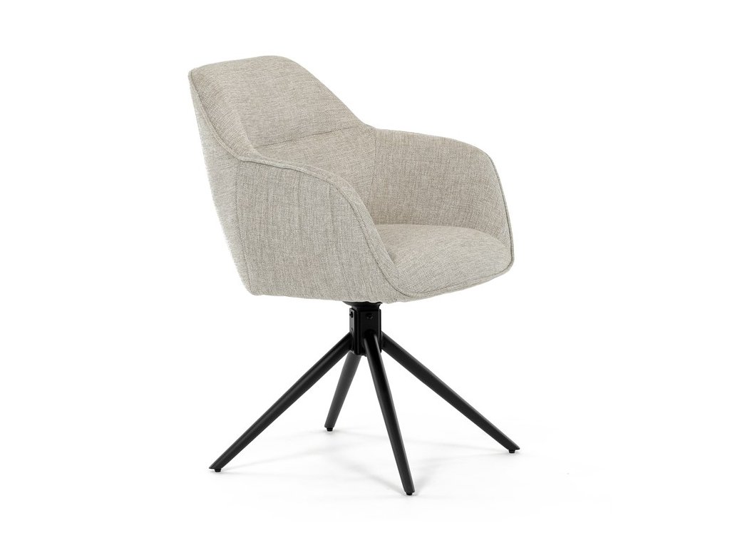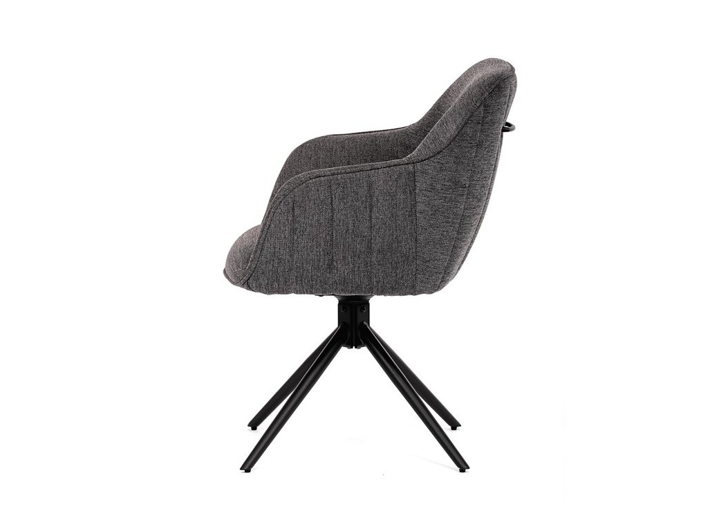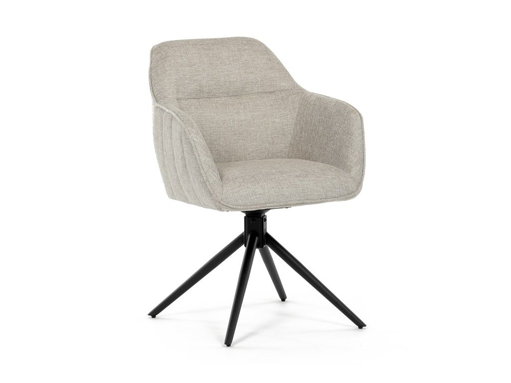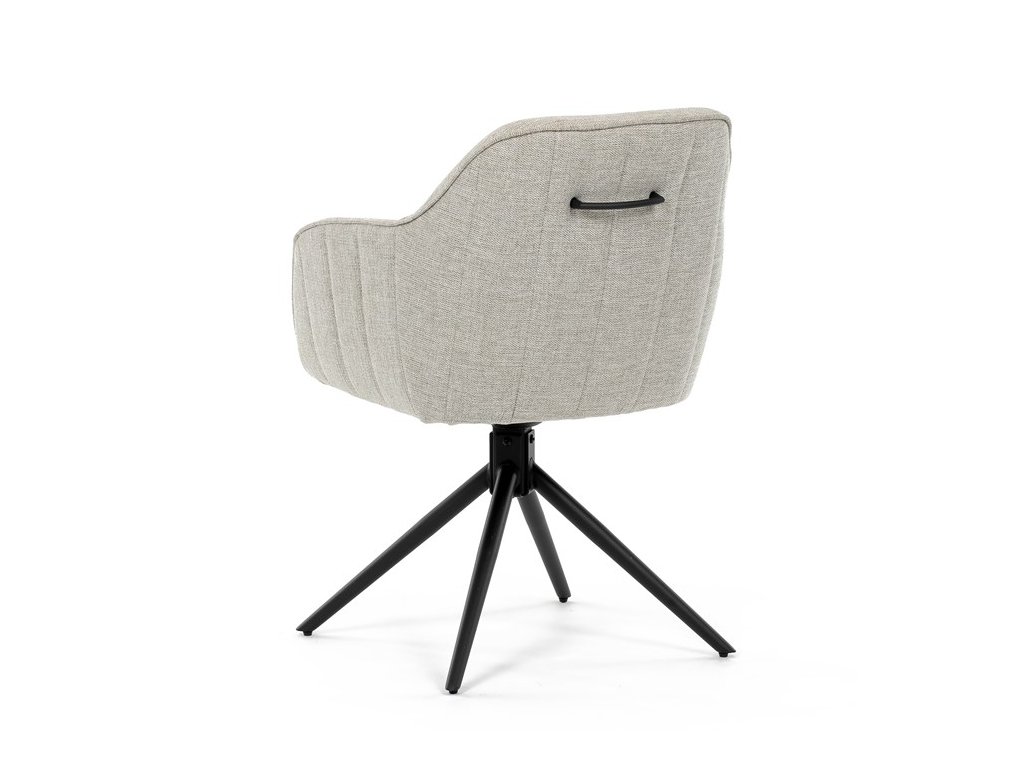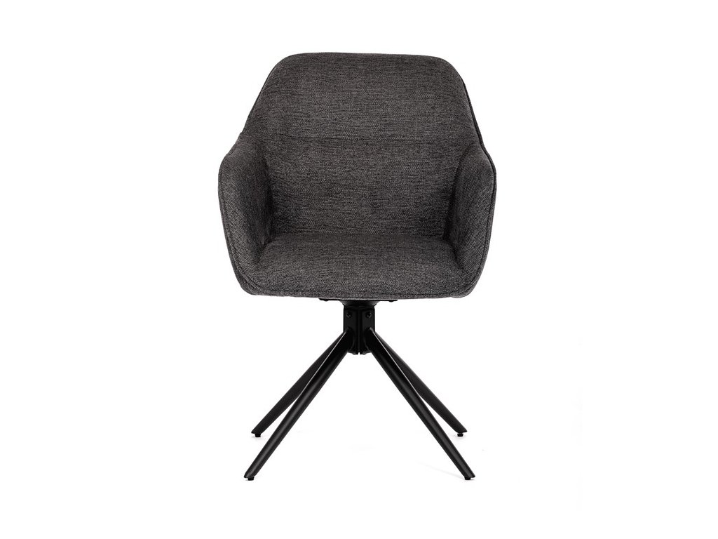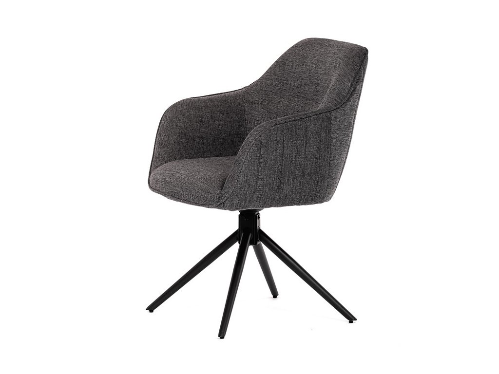Moderní jídelní židle v šedé barvě s efektním prošitím zádové i přední části opěráku. Prošití je v brvě potahového materiálu. Zadní část opěráku je opatřena vkusným madlem pro snazší manipulaci. Čtyři kovové nohy v matném práškovém nástřiku vycházejí z centrálního bodu ve středu sedáku. Sedák je otočný o 180° s tvarovou pamětí.Doplňkové parametry