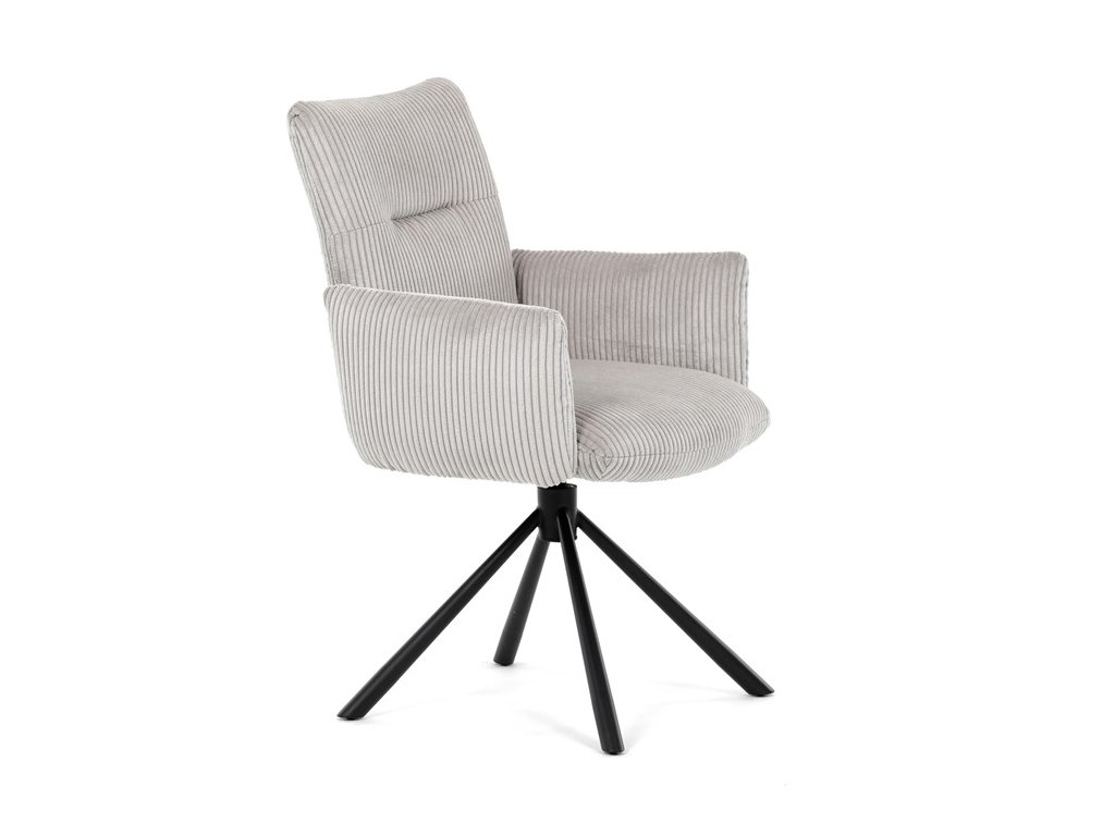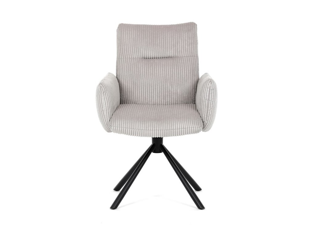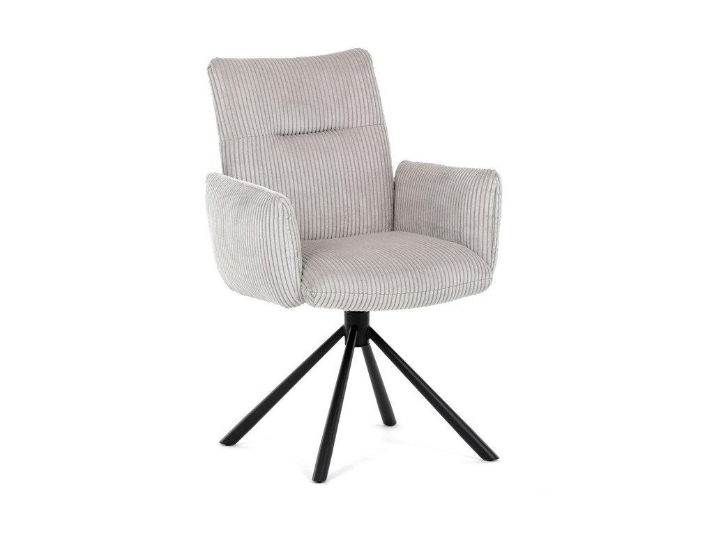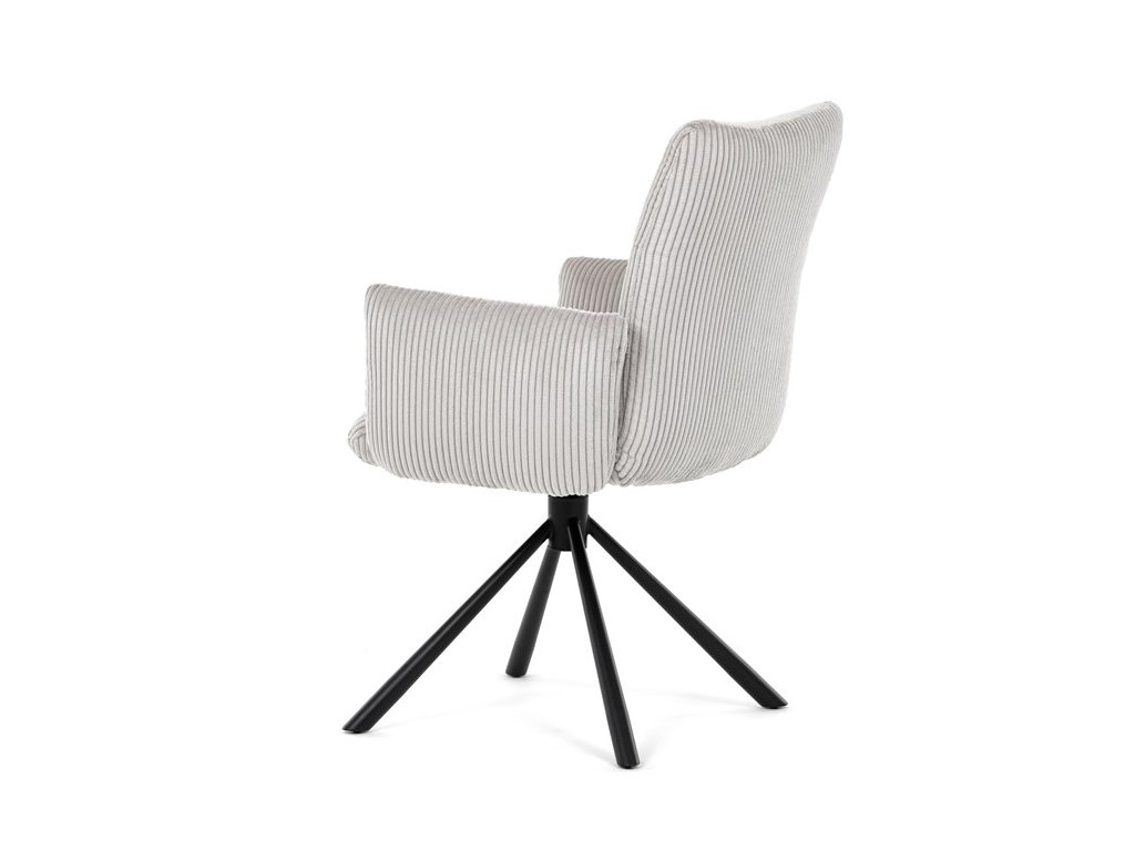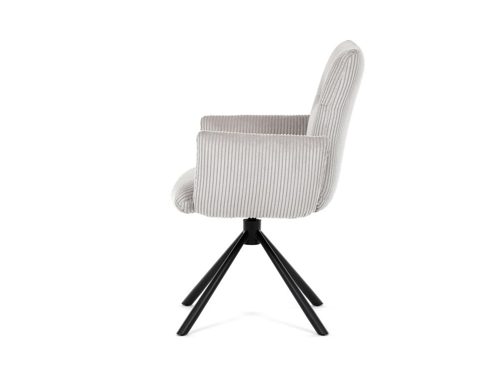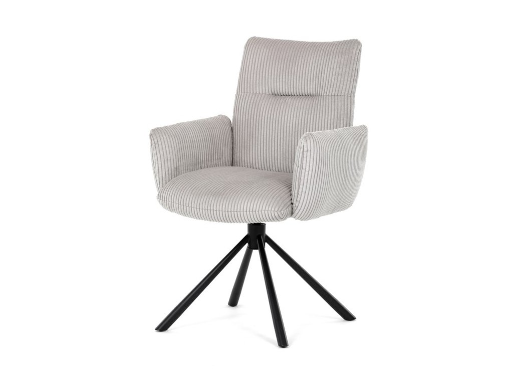 Stylová jídelní židle značky Autronic v moderním designu spojuje pohodlí s funkčností. Čalounění z měkké manšestrové látky a výplň z PU pěny zajišťují maximální komfort i při delším sezení. Praktické područky a otočný mechanismus o 360° přinášejí volnost pohybu a usnadňují manipulaci. Stabilní kovová podnož v černé barvě dodává židli eleganci a zároveň zaručuje vysokou odolnost. Ideální volba do každé moderní jídelny, která klade důraz na styl a pohodlí.Specifikace: