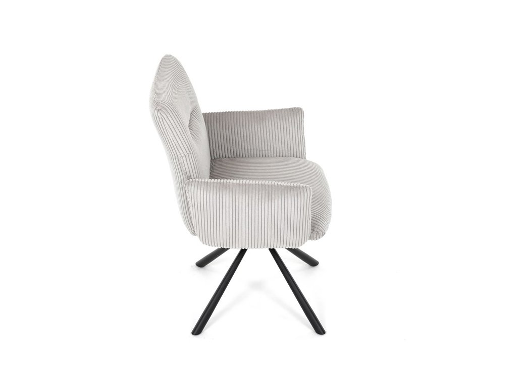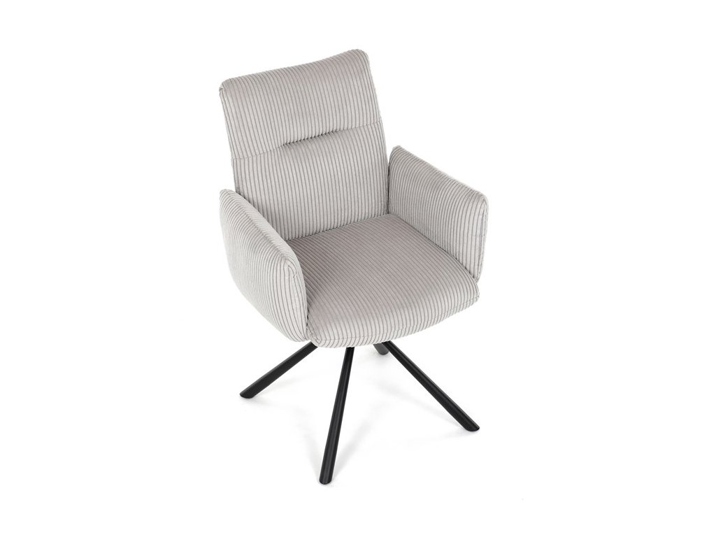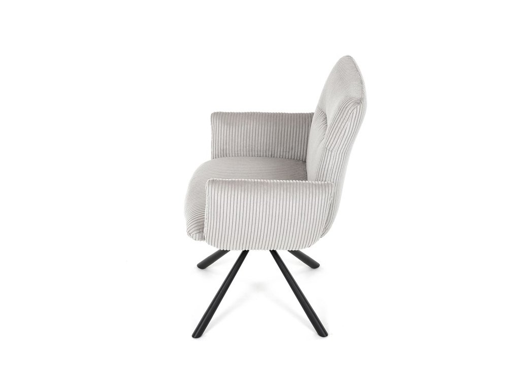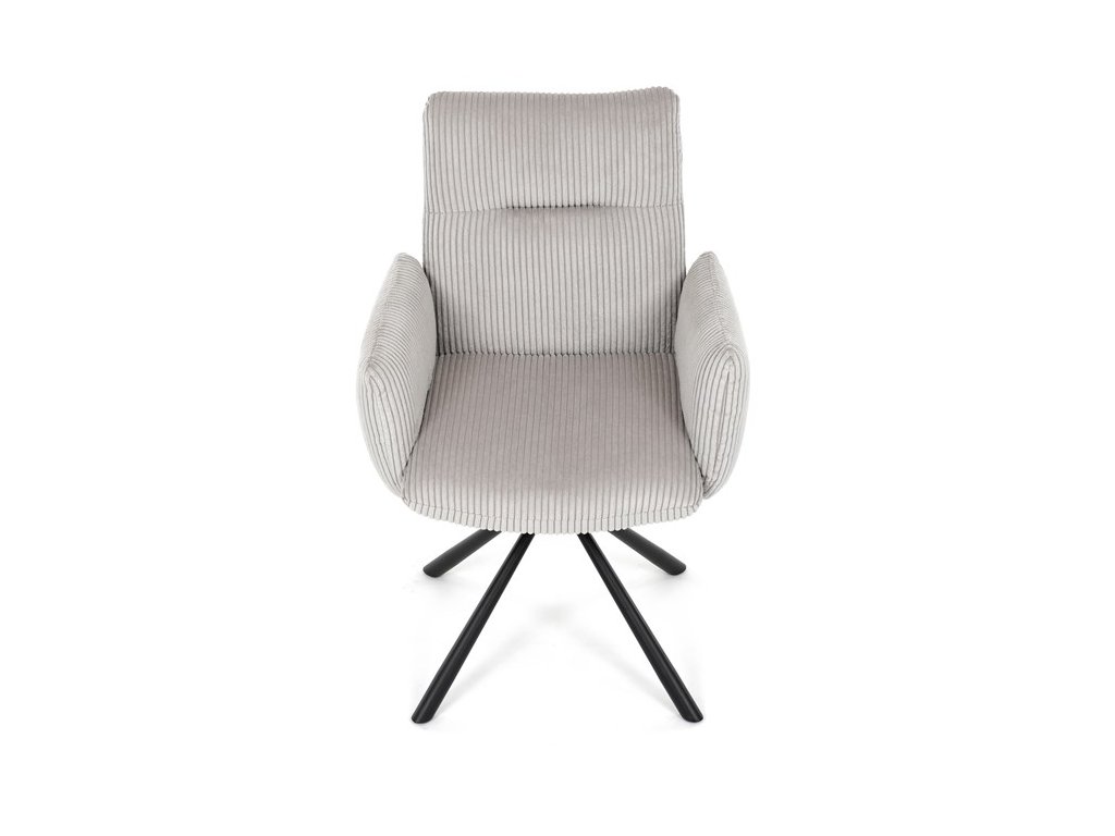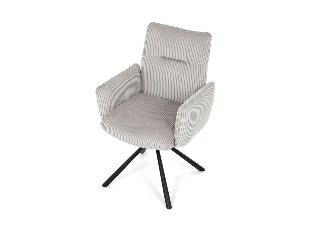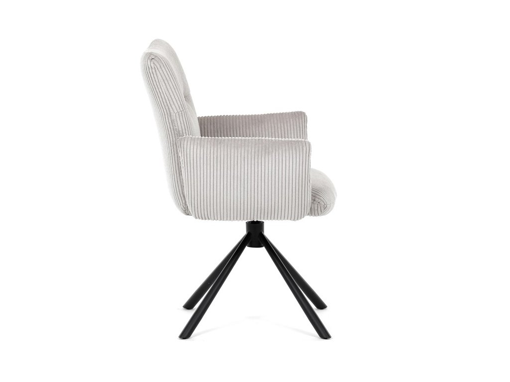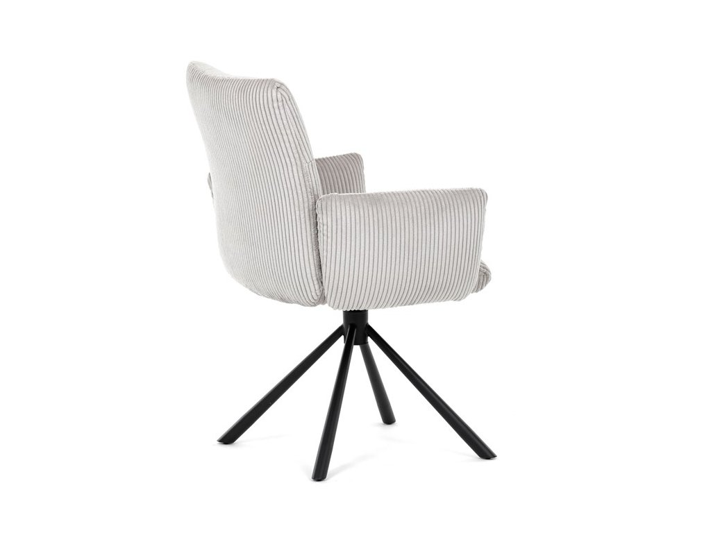 Stylová jídelní židle značky Autronic v moderním designu spojuje pohodlí s funkčností. Čalounění z měkké manšestrové látky a výplň z PU pěny zajišťují maximální komfort i při delším sezení. Praktické područky a otočný mechanismus o 360° přinášejí volnost pohybu a usnadňují manipulaci. Stabilní kovová podnož v černé barvě dodává židli eleganci a zároveň zaručuje vysokou odolnost. Ideální volba do každé moderní jídelny, která klade důraz na styl a pohodlí.Specifikace: