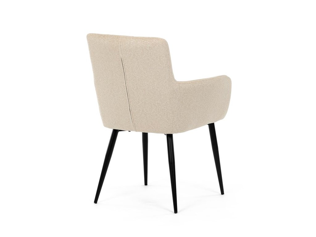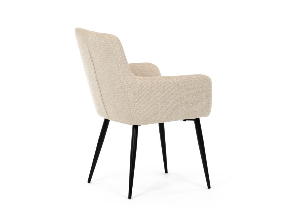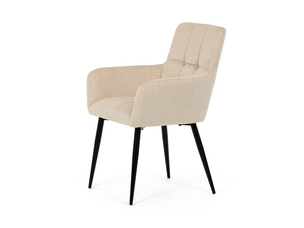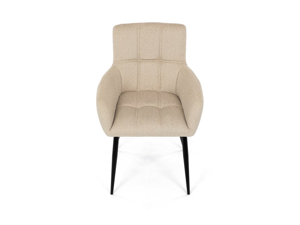 Elegantní jídelní židle značky Autronic v krémovém provedení je stylovým doplňkem, který skvěle ladí s moderními i klasickými interiéry. Sedák s měkkou výplní z PU pěny a kvalitní látkové čalounění poskytují vysoký komfort i při delším sezení.Černé kovové nohy zajišťují stabilitu a přidávají jemný industriální nádech, který židli dodává univerzální vzhled. Komfortní područky a ergonomický design zvyšují pohodlí a dělají z této židle ideální volbu nejen pro domácí jídelny, ale také pro restaurační prostory, kde přispěje k vytvoření útulné a příjemné atmosféry. Tento nadčasový kousek kombinuje funkčnost s estetikou a zaručuje spokojenost při každém posezení.