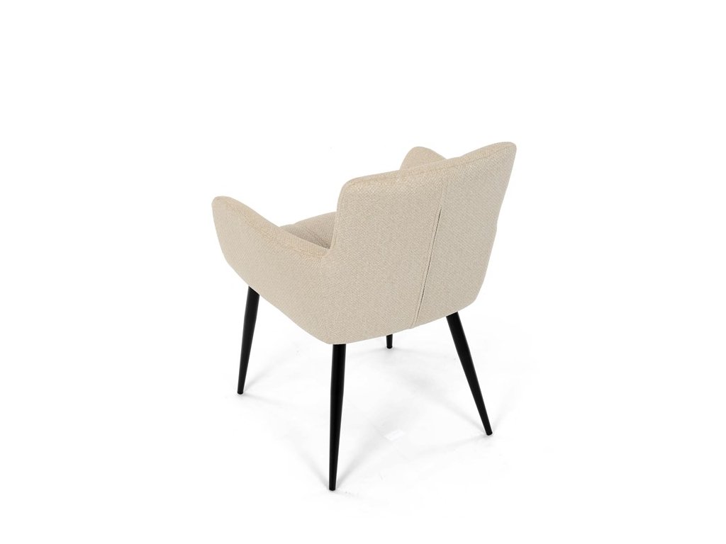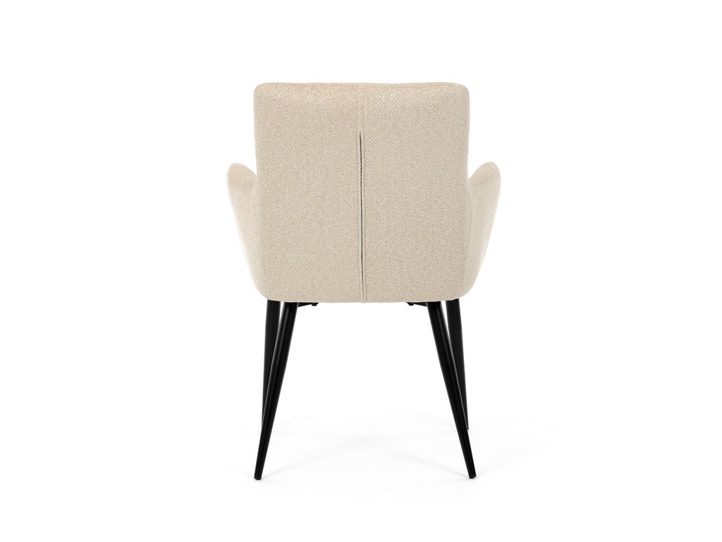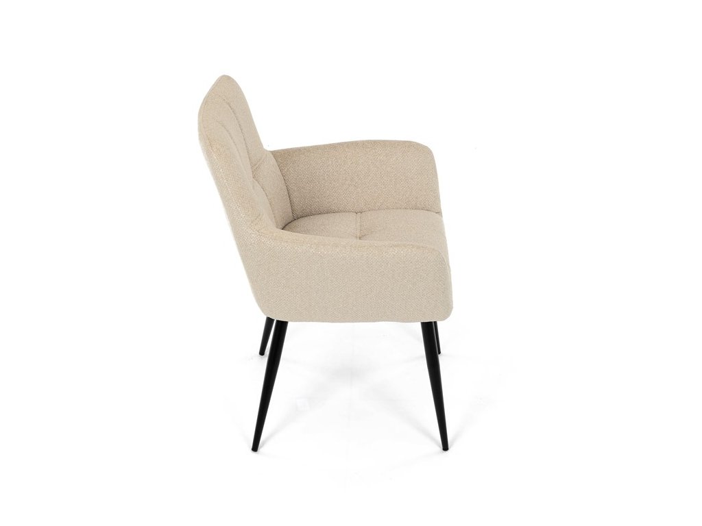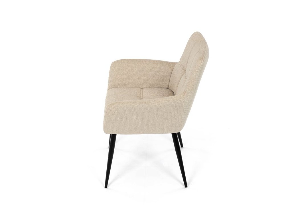 Elegantní jídelní židle značky Autronic v krémovém provedení je stylovým doplňkem, který skvěle ladí s moderními i klasickými interiéry. Sedák s měkkou výplní z PU pěny a kvalitní látkové čalounění poskytují vysoký komfort i při delším sezení.Černé kovové nohy zajišťují stabilitu a přidávají jemný industriální nádech, který židli dodává univerzální vzhled. Komfortní područky a ergonomický design zvyšují pohodlí a dělají z této židle ideální volbu nejen pro domácí jídelny, ale také pro restaurační prostory, kde přispěje k vytvoření útulné a příjemné atmosféry. Tento nadčasový kousek kombinuje funkčnost s estetikou a zaručuje spokojenost při každém posezení.