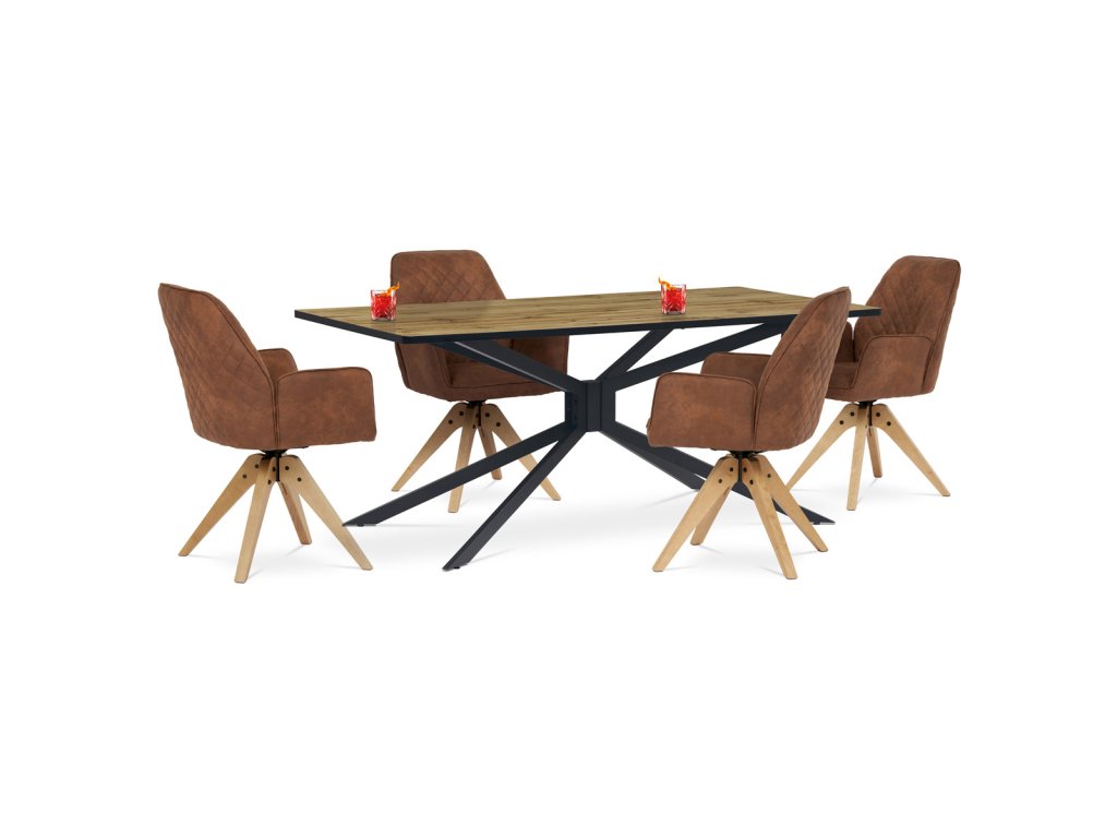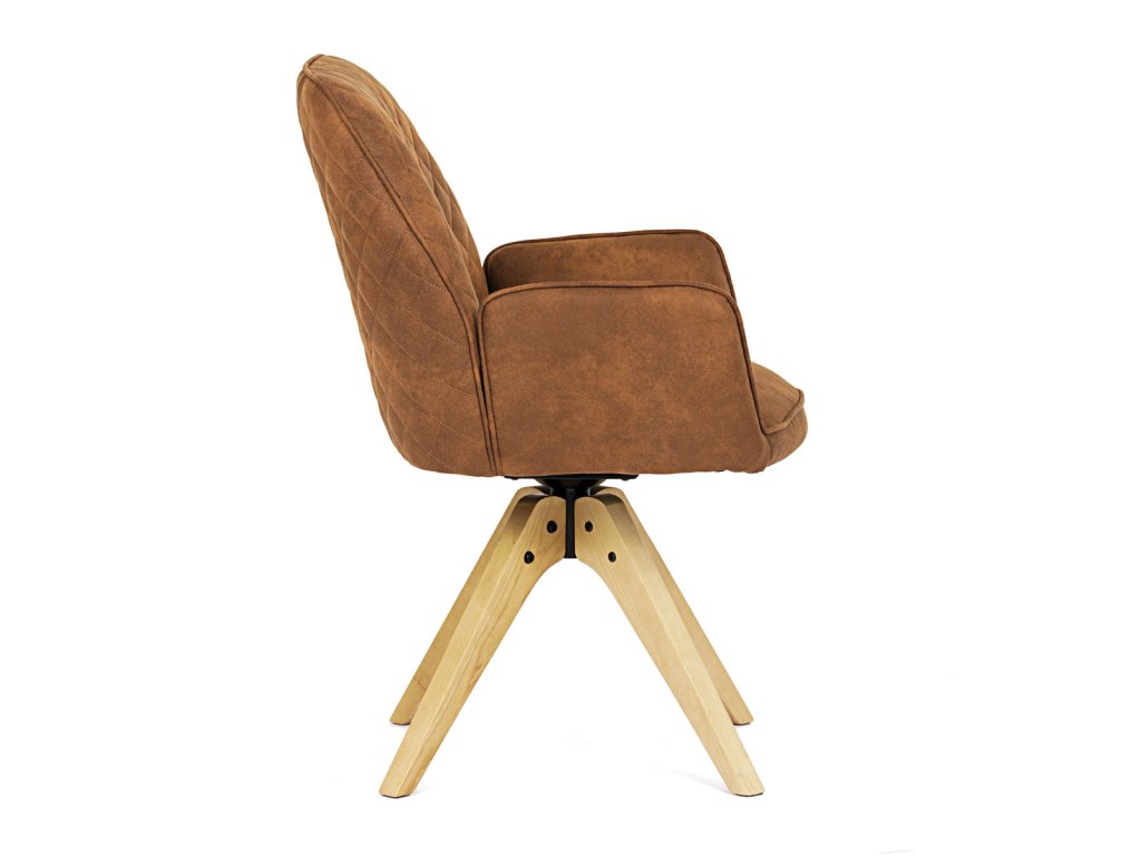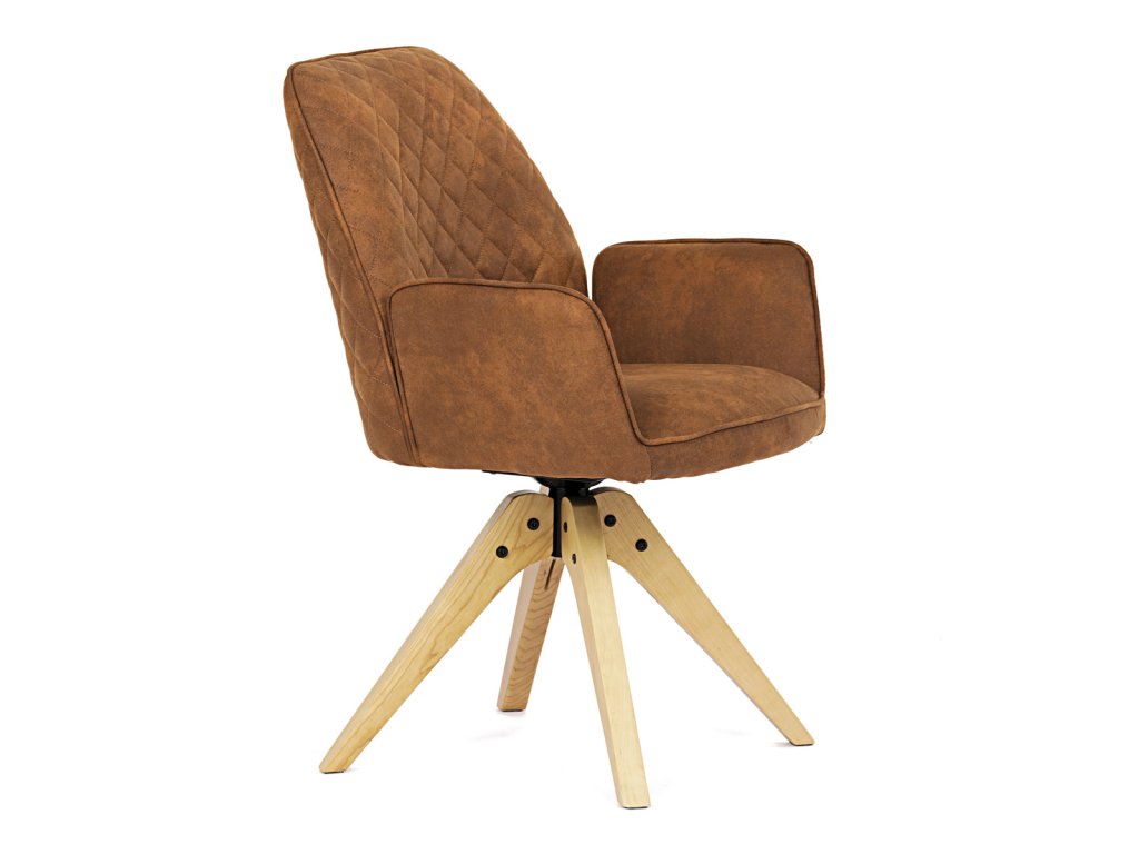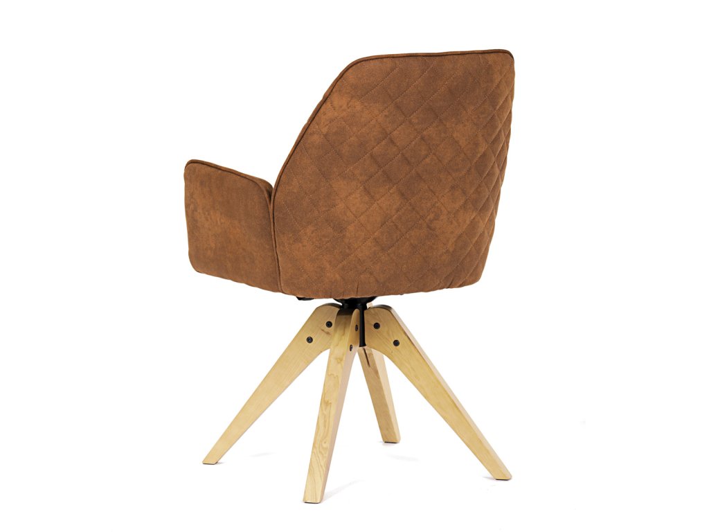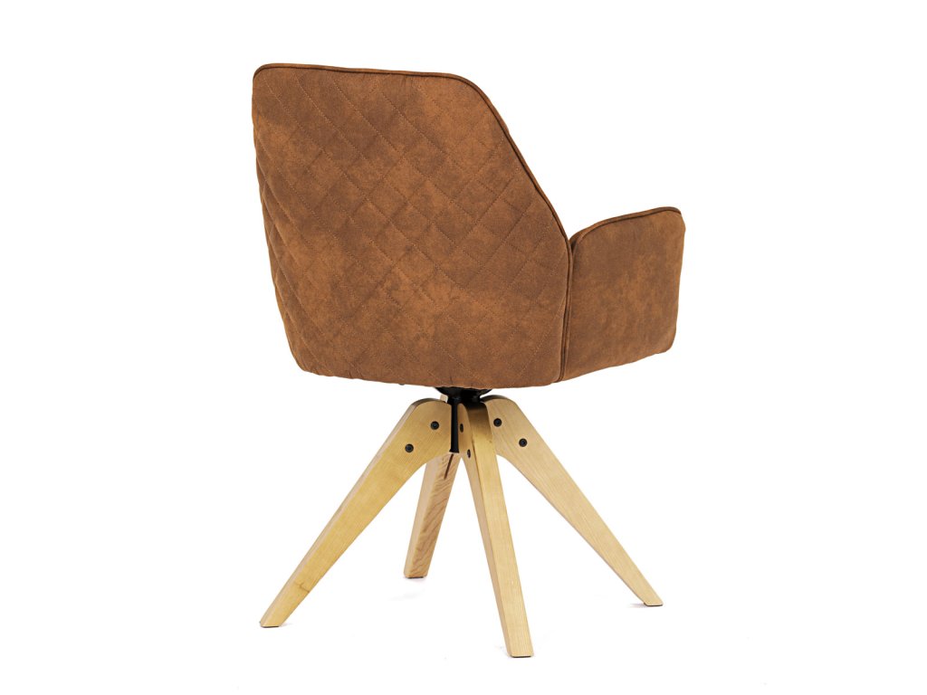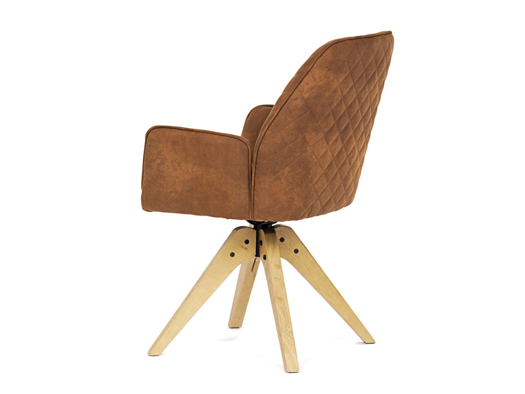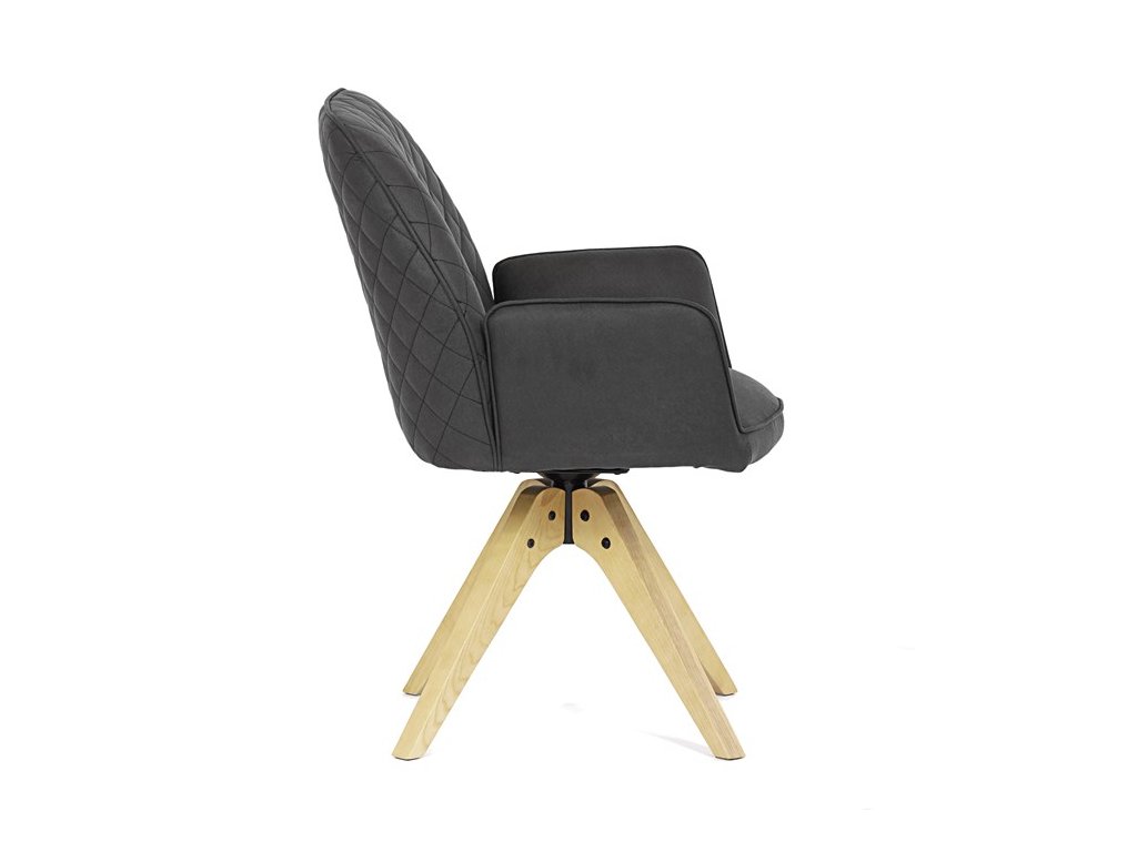 Jídelní židle s područkami potažená v textilii imitující broušenou kůži. Záda a opěrák jsou efektně prošity ve tvaru diamantu. Barva prošití je v barvě potahového materiálu. Nohy jsou z lakovaného jasanového dřeva, mořeny v odstínu dub. Sedák je otočný o 180° s tvarovou pamětí.Doplňkové parametry