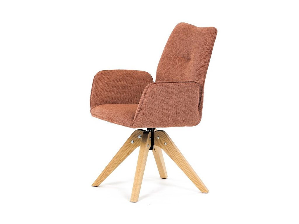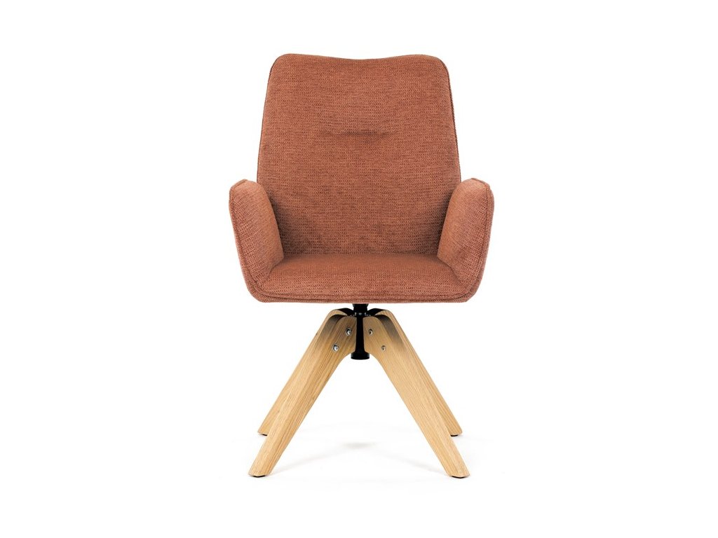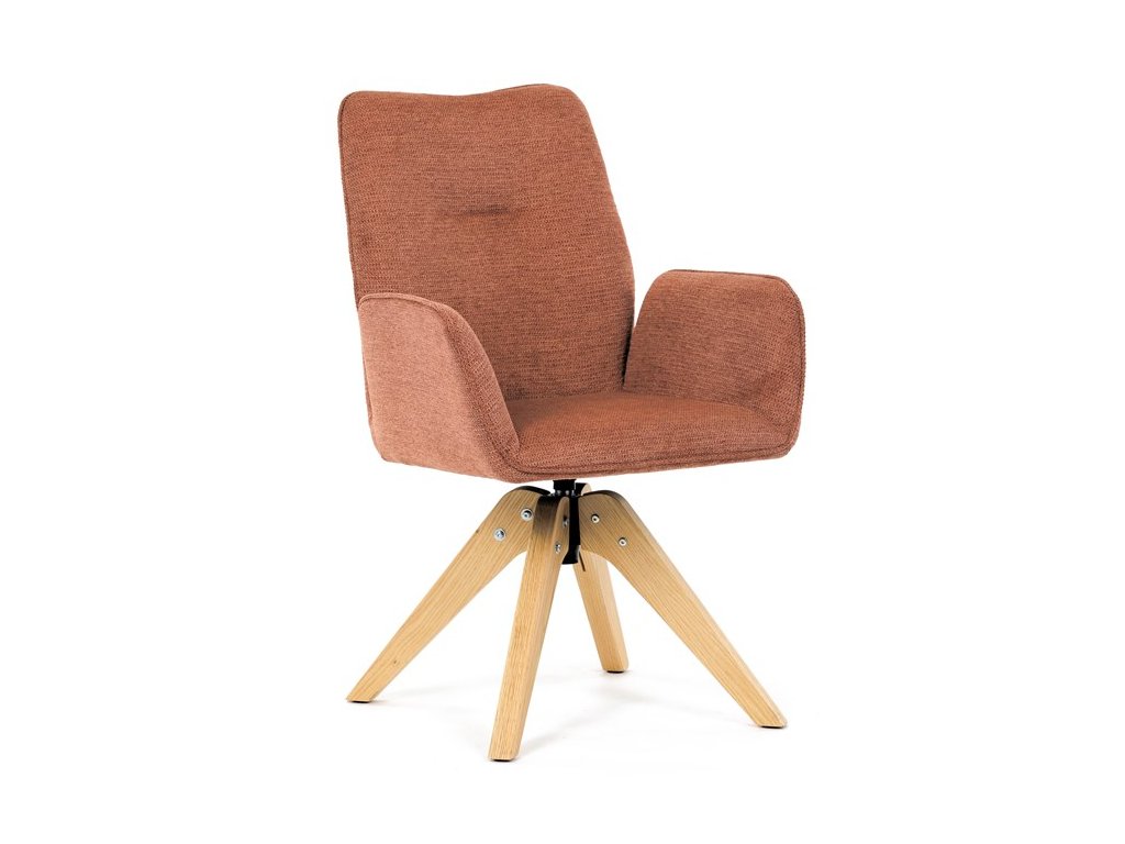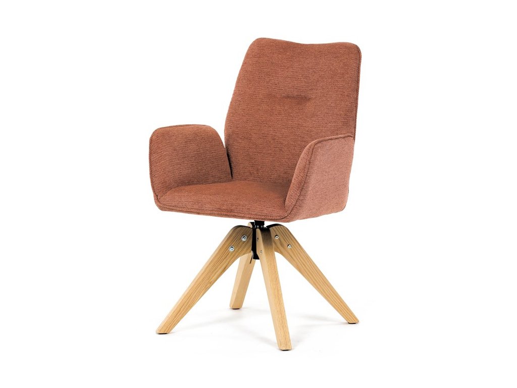 Stylová jídelní židle značky Autronic v moderním designu, která kombinuje komfort a eleganci. Její pohodlný sedák i opěrák jsou čalouněny voděodolnou látkou v příjemném oranžovém odstínu, což z ní činí skvělý doplněk do jakéhokoliv interiéru. Masivní dřevěné nohy v přírodní barvě dodávají židli stabilitu a odolnost, zatímco otočný mechanismus s funkcí 360° přináší uživatelský komfort. Tato jídelní židle je ideální nejen do domácností, ale také do kaváren či restaurací, kde je požadován moderní a funkční nábytek.Doplňkové parametry