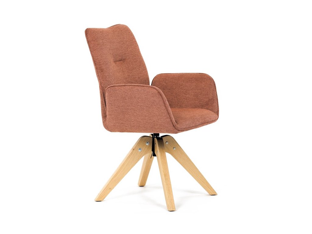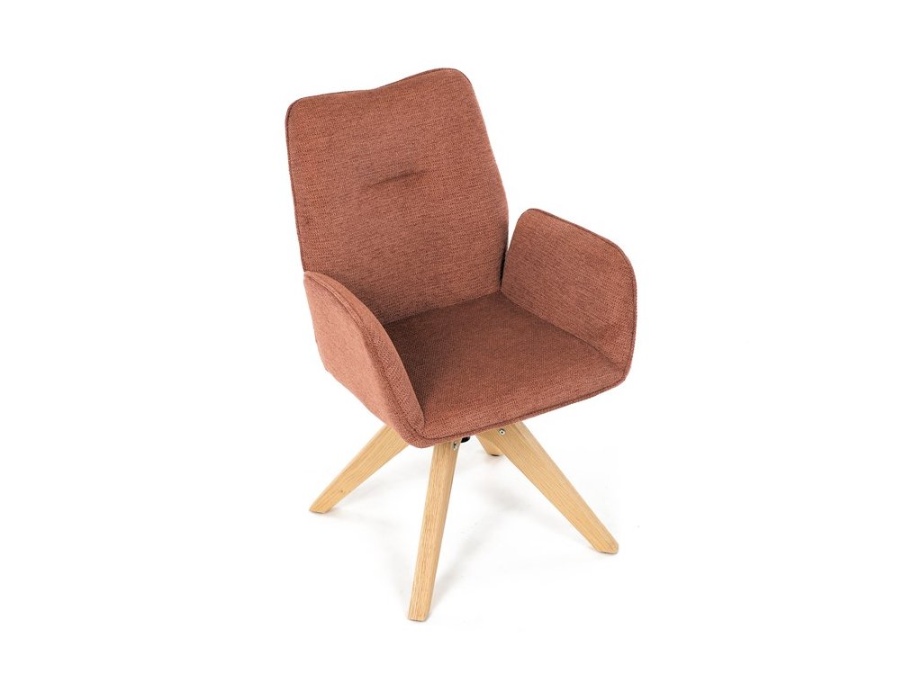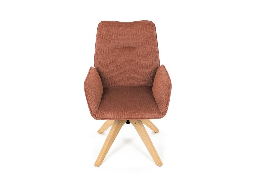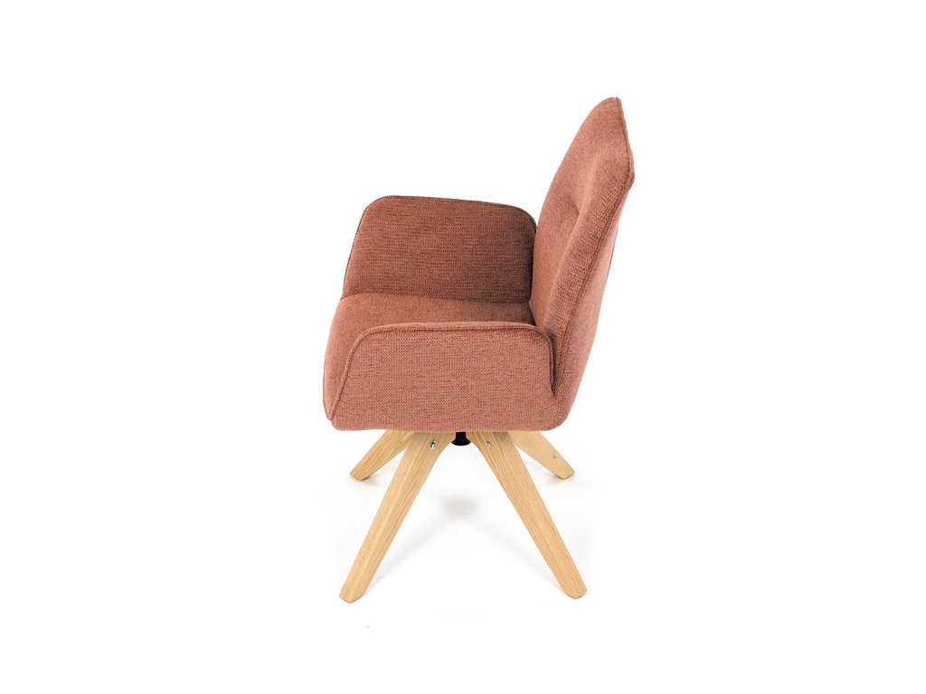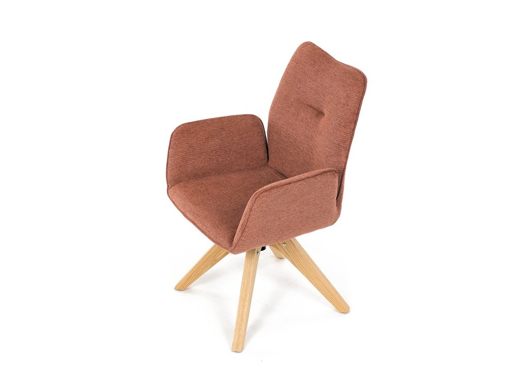 Stylová jídelní židle značky Autronic v moderním designu, která kombinuje komfort a eleganci. Její pohodlný sedák i opěrák jsou čalouněny voděodolnou látkou v příjemném oranžovém odstínu, což z ní činí skvělý doplněk do jakéhokoliv interiéru. Masivní dřevěné nohy v přírodní barvě dodávají židli stabilitu a odolnost, zatímco otočný mechanismus s funkcí 360° přináší uživatelský komfort. Tato jídelní židle je ideální nejen do domácností, ale také do kaváren či restaurací, kde je požadován moderní a funkční nábytek.Doplňkové parametry